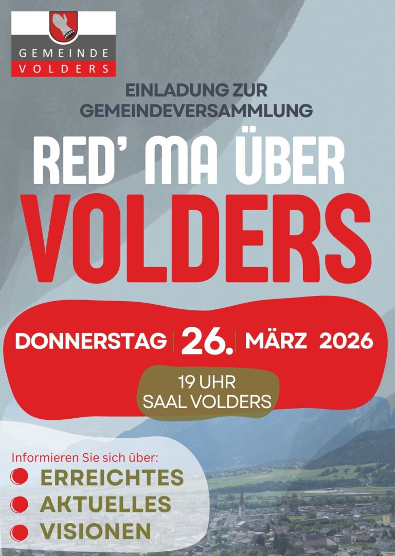 Red' ma über Volders! Einladung zur Gemeindeversammlung